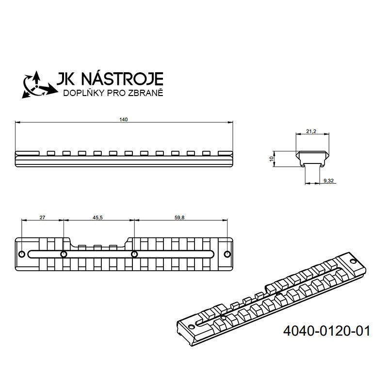 Slitta Picatinny (base per ottica) per installare anelli con interfaccia Picatinny.