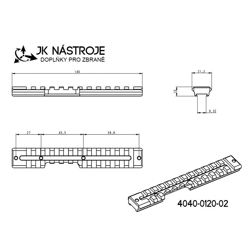Slitta Picatinny (base per ottica) per installare anelli con interfaccia Picatinny.