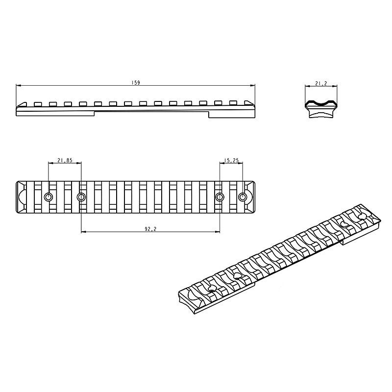 Slitta Picatinny (base per ottica) per installare anelli con interfaccia Picatinny.
